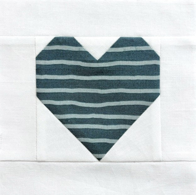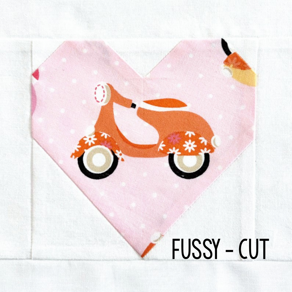 This pattern makes a heart block with no seams inside the heart. This makes it easy to fussy cut or use stripes, plaids or any other fabric where a seam would distract from the cuteness of the fabric! Full color, detailed instructions are provided for the block assembly only. This is a PDF pattern, available for instant download. And the best part is, this pattern is FREE for a limited time!