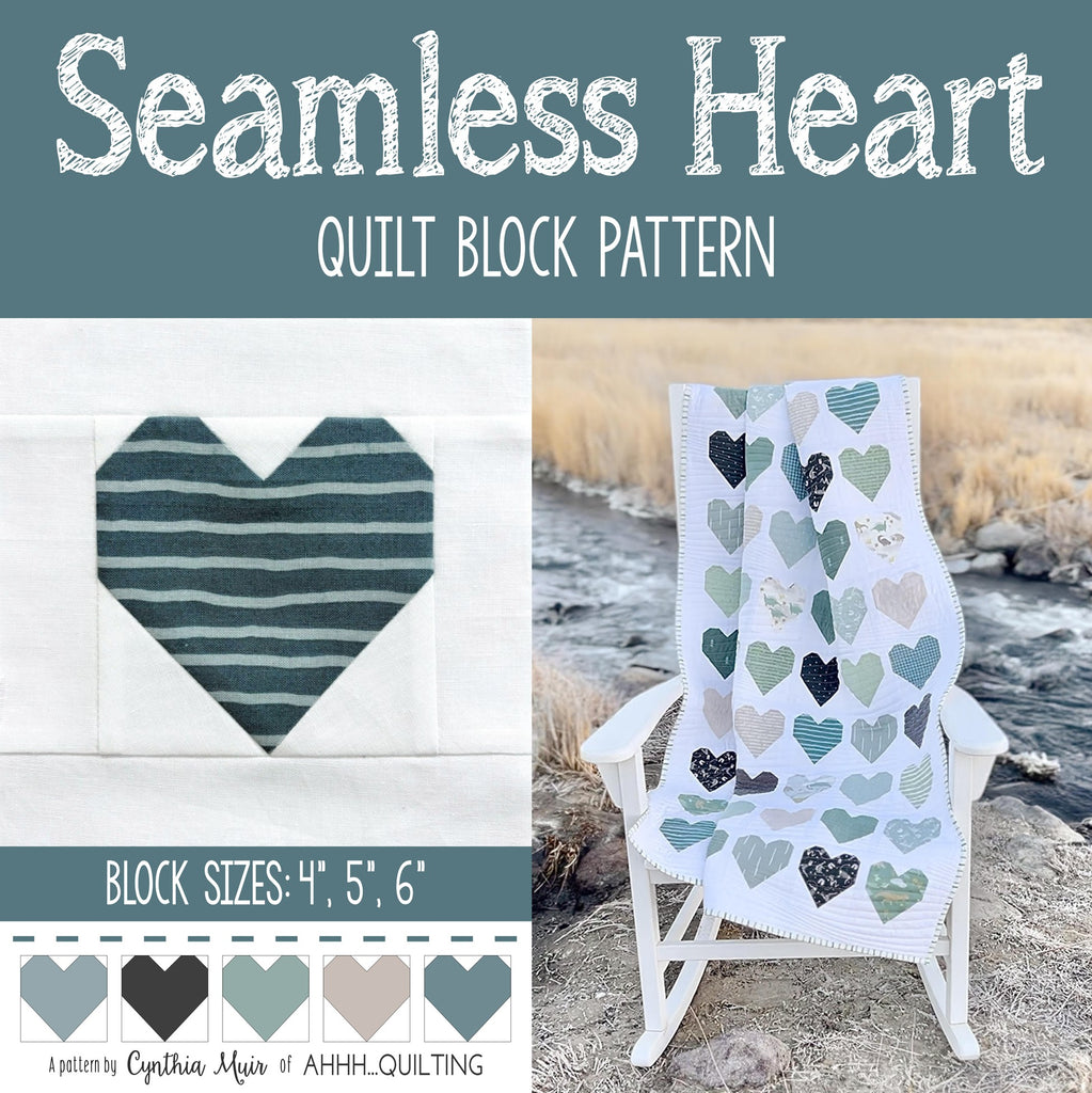 Finished Sizes: Includes templates for 4", 5", and 6" seamless hearts.